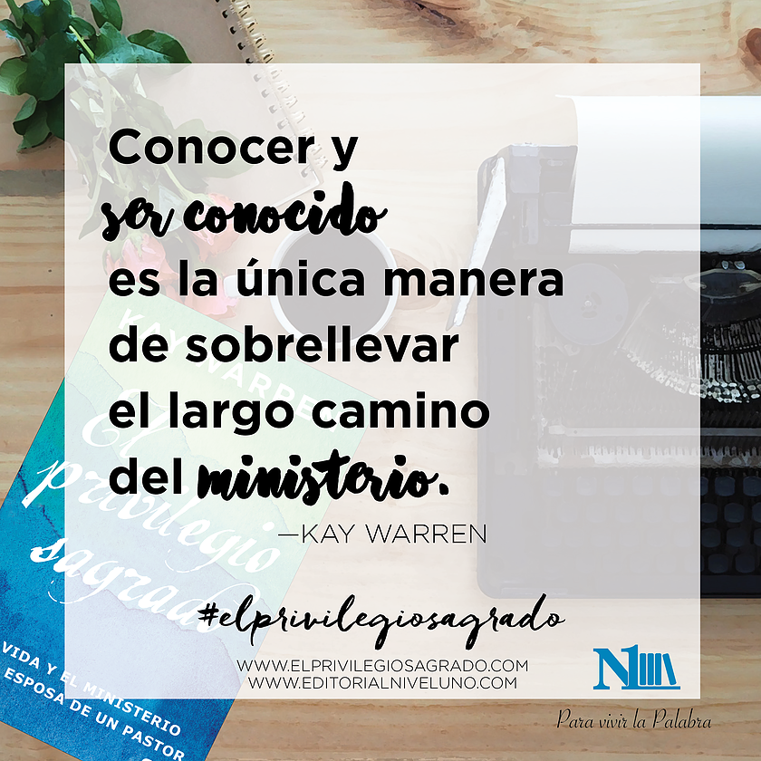Kay Warren, cofundadora de la iglesia de Saddleback, comparte las luchas y las alegrías del ministerio en su nuevo libro, Privilegio Sagrado: su vida y su ministerio como esposa de un pastor, lanzando en mayo de 2017. Con historias profundamente personales y sabiduría obtenida de décadas de experiencia, Warren le escribe a mujeres que entienden de primera mano las complejas dinámicas inherentes de cualquier ministerio. Privilegio Sagrado presenta un prólogo de Rick Warren, pastor de la iglesia de Saddleback, y compañero de Kay en la vida y el ministerio.